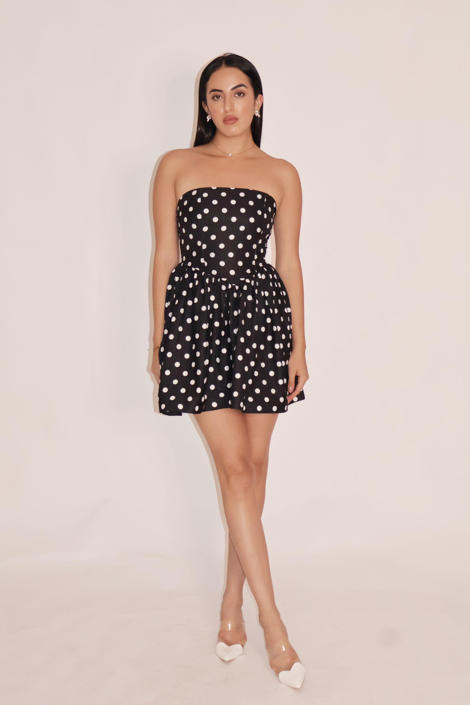 The AISHA Dress is a playful yet polished mini, featuring a tube neckline with a corset-inspired illusion and a sharply defined V-shaped waistline. Gathered detailing and an exaggerated flare give the dress movement while cinching the body for a flattering, feminine look. Crafted in premium imported fabric with full lining and a clean side zipper, it is the perfect balance of chic and youthful energy. Style it with statement heels or minimal accessories. The model is wearing size S. Delivery within 3–15 business days.