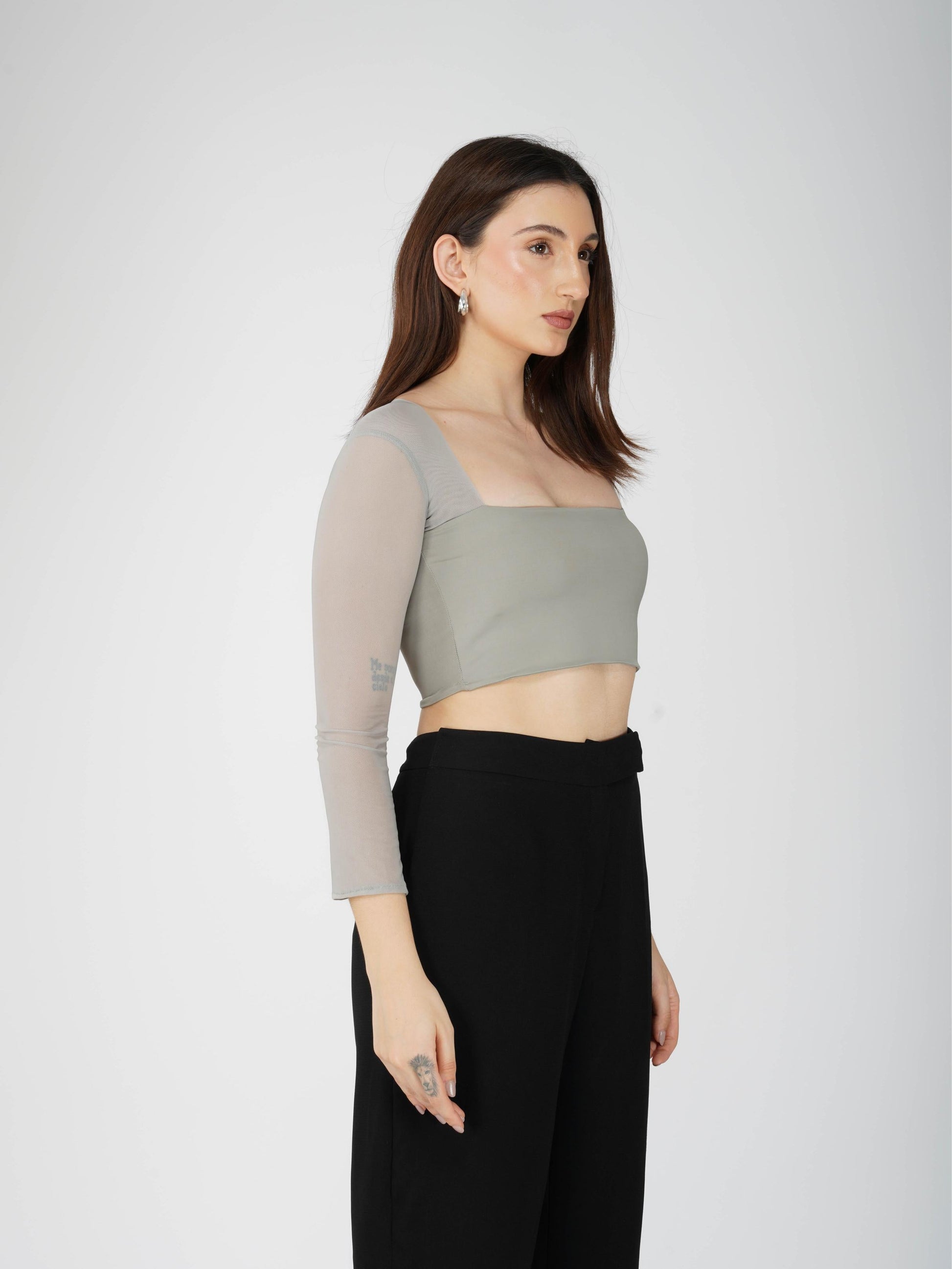 Grey Mesh Square Neck Crop Top - Amber Top (Ash)