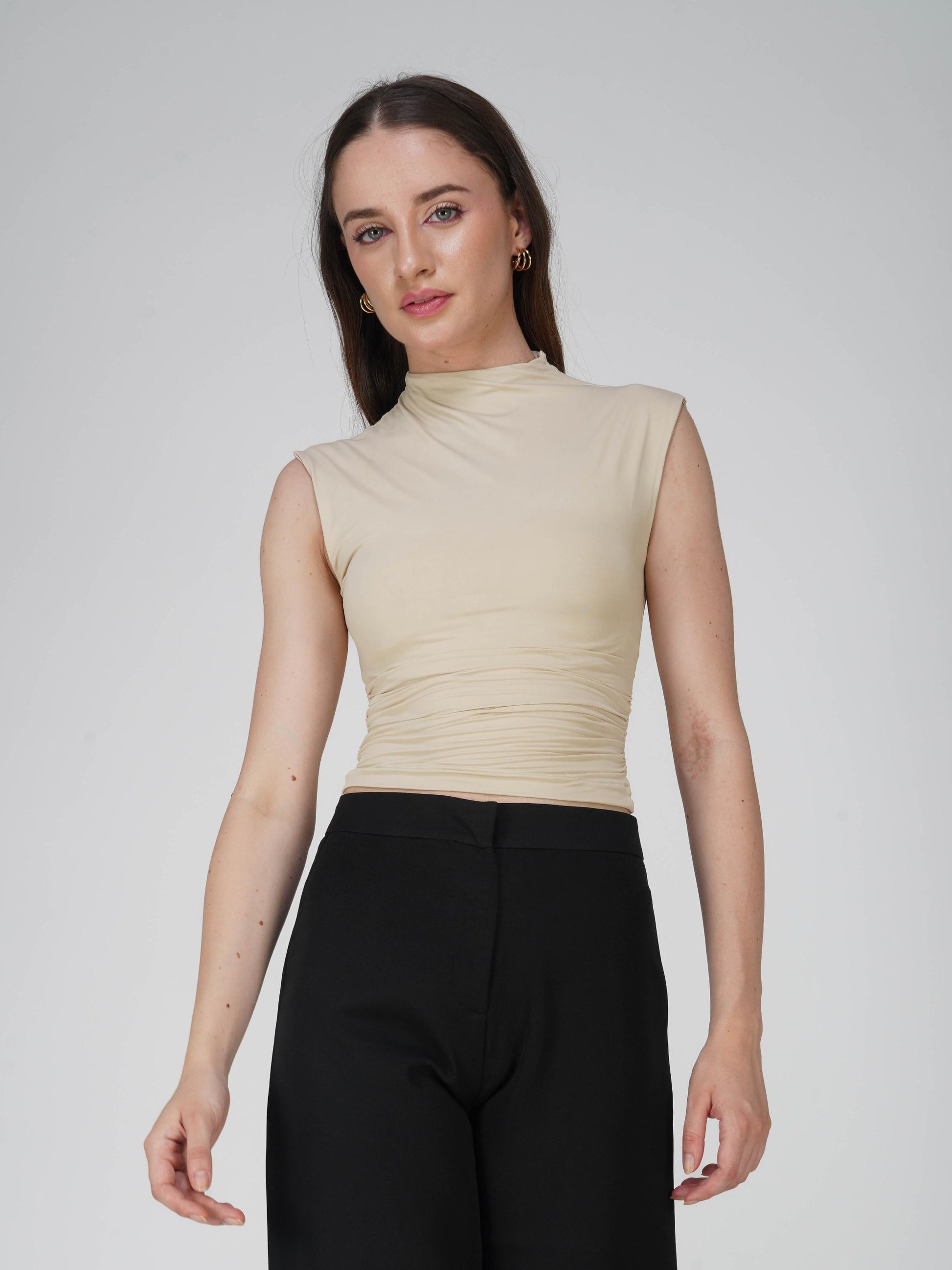 Refresh your wardrobe with the Beam Tee in Sand. This collared yoke top in soft sand beige features side ruched detailing for a snatched, sculpted look. With its sleek fit and polished collar, it’s perfect for pairing with high-waisted bottoms for an effortlessly cool day-to-night vibe.