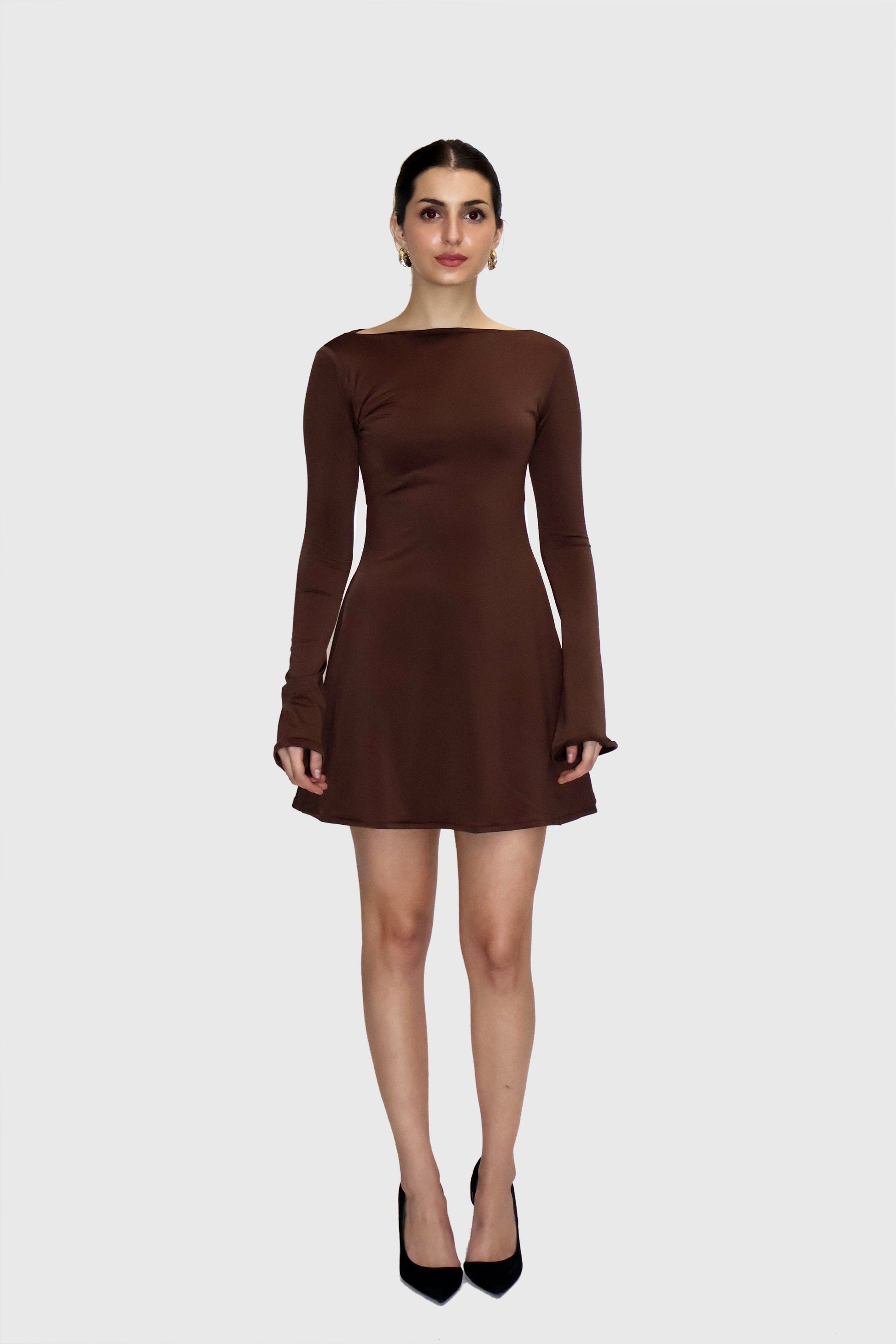 Turn heads with the Blair Dress in Coco. This chic short dress in rich coco brown features a flattering fitted silhouette and sleek minimal design, perfect for statement day-to-night dressing. Whether styled with heels or sneakers, it's your go-to piece for an effortlessly polished look.