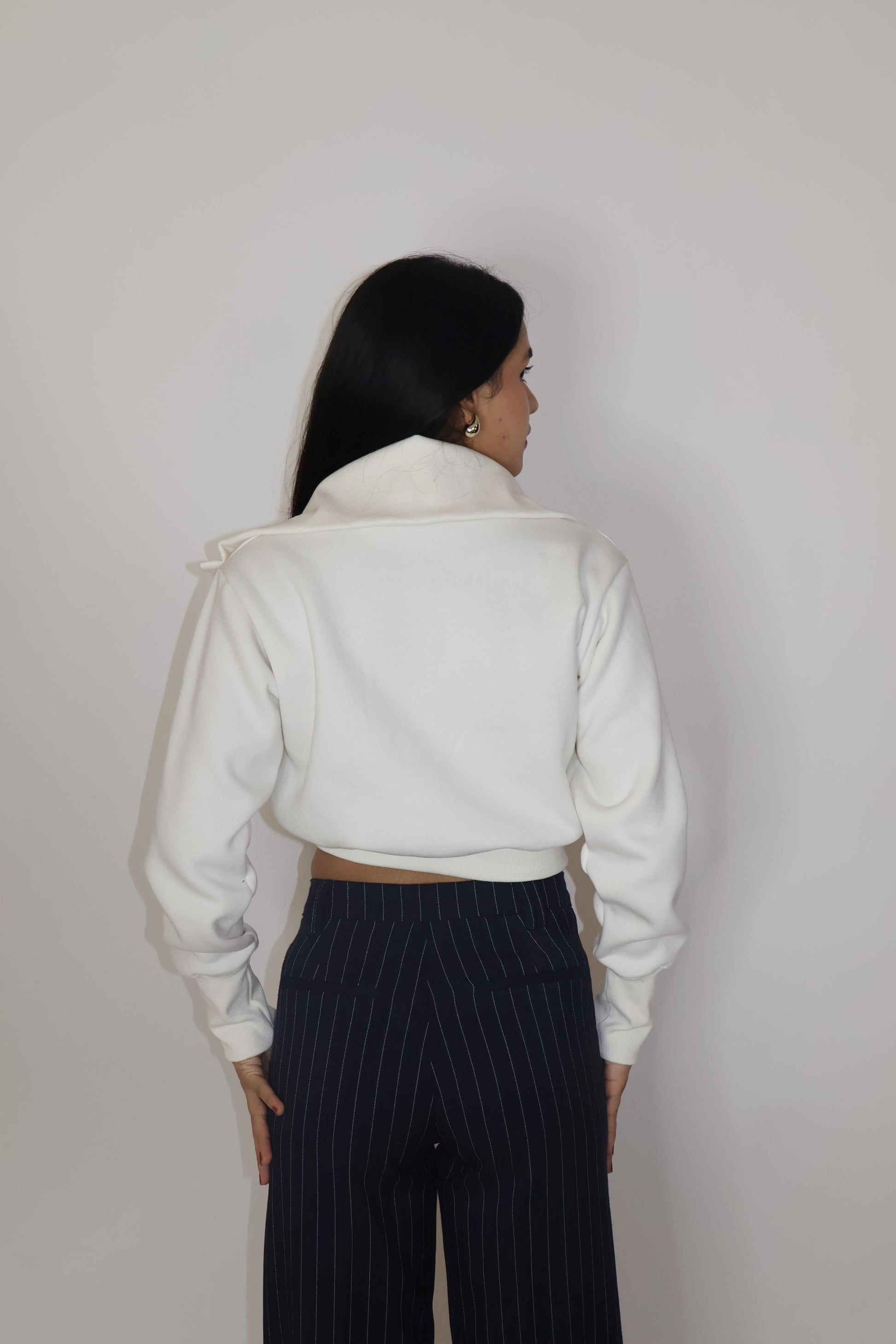 White Full Sleeve Cropped Zipper Top - Cropped Zipper (Dove)
