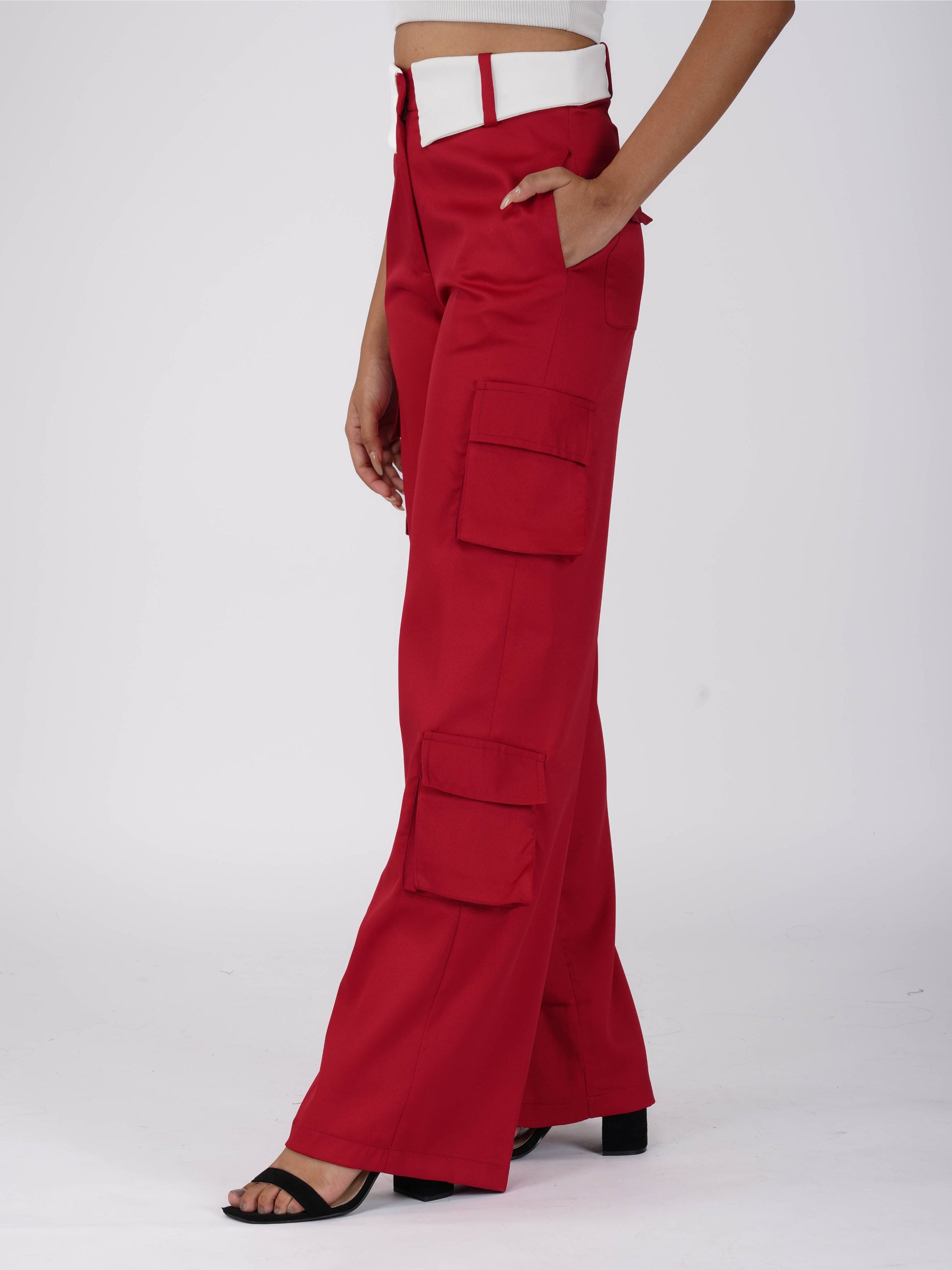Step up your street style with the Dusk Pants in Cherry. These relaxed fit cargo pants in vibrant cherry red feature utility pockets and a comfortable high waist, making them perfect for off-duty days or edgy everyday looks. Pair with crop tops or oversized tees for a cool, laid-back vibe.