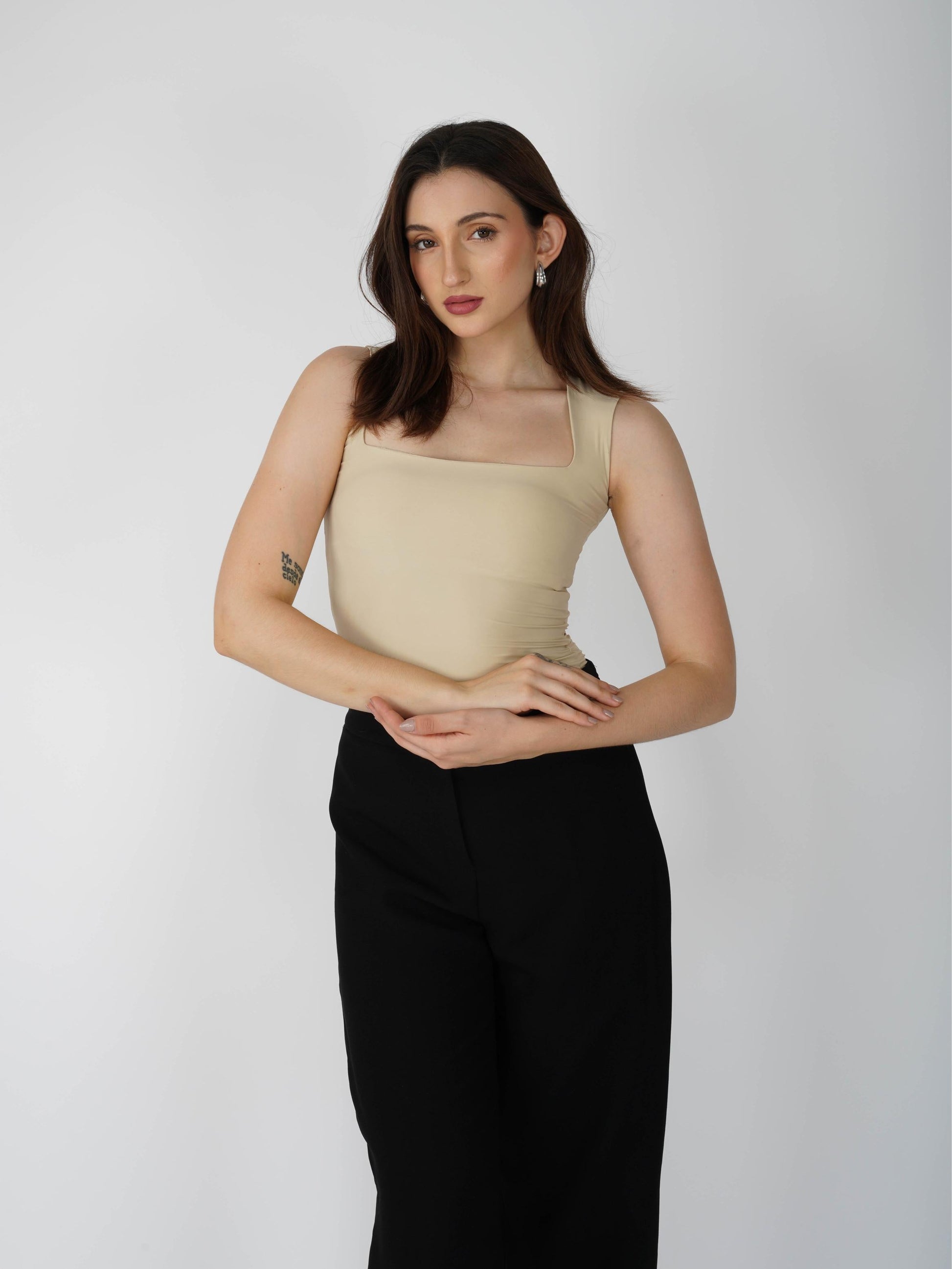 Beige Square Neck Bodysuit - Echo Bodysuit (Sand)