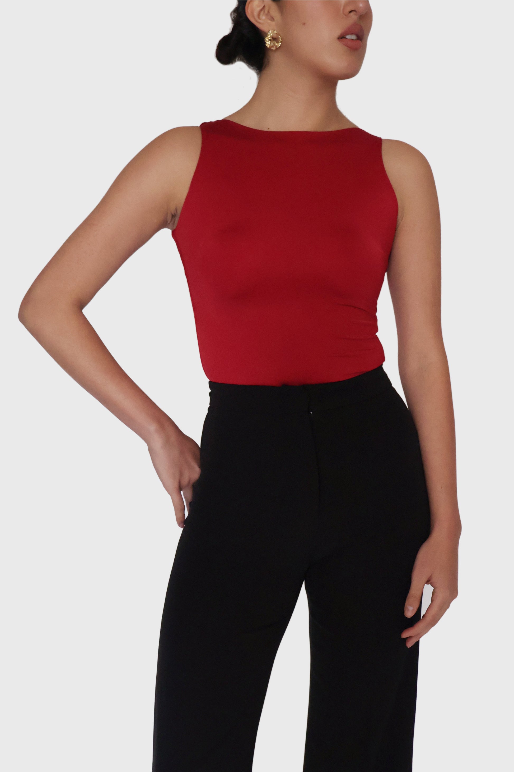 Red Boat Neck Bodysuit - Fern Bodysuit (Cherry)