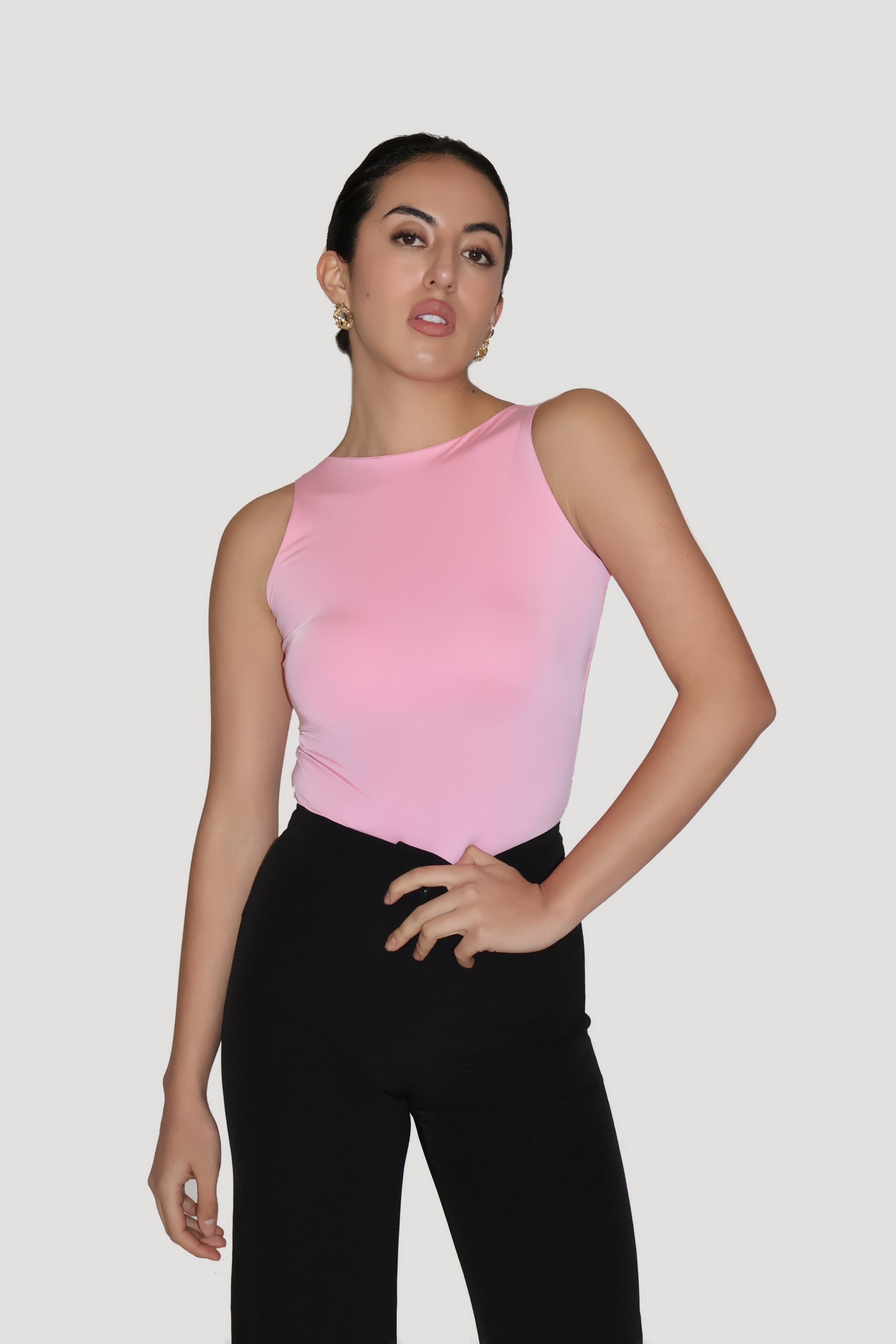 Pink Boat Neck Bodysuit - Fern Bodysuit (Flamingo)