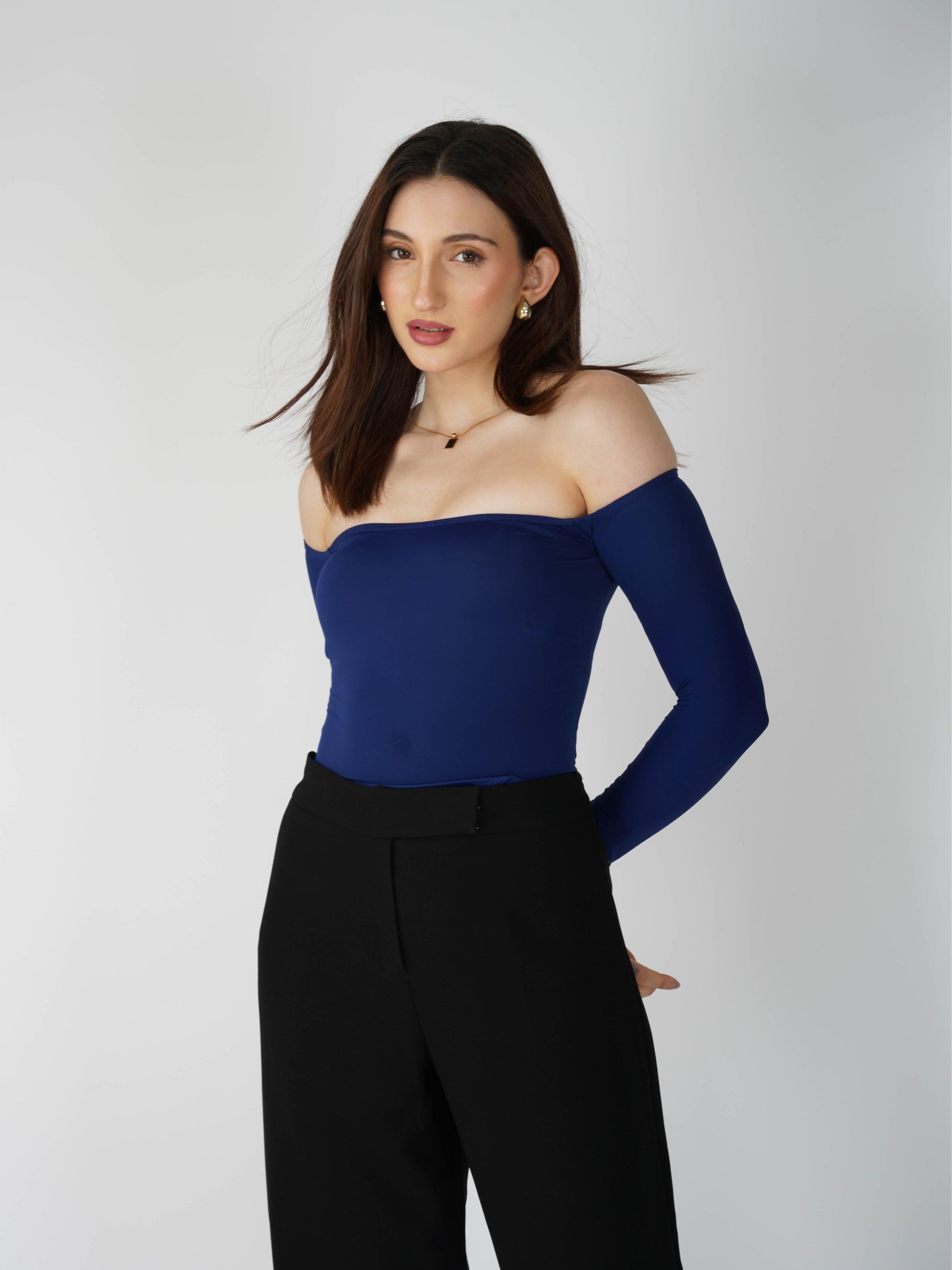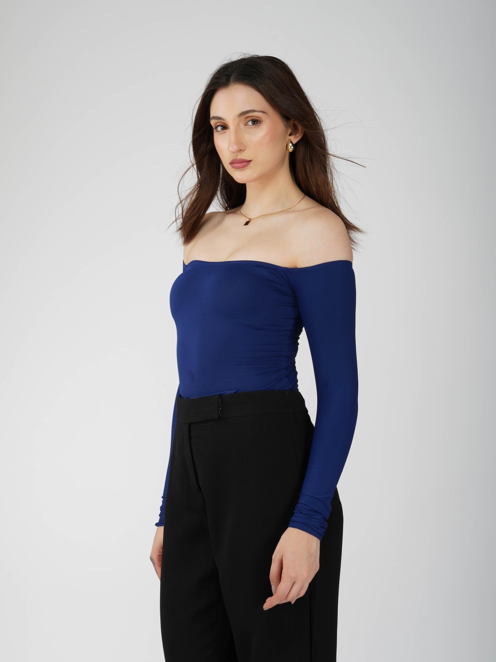 Blue Off-Shoulder Bodysuit - Glaze Bodysuit (Navy)
