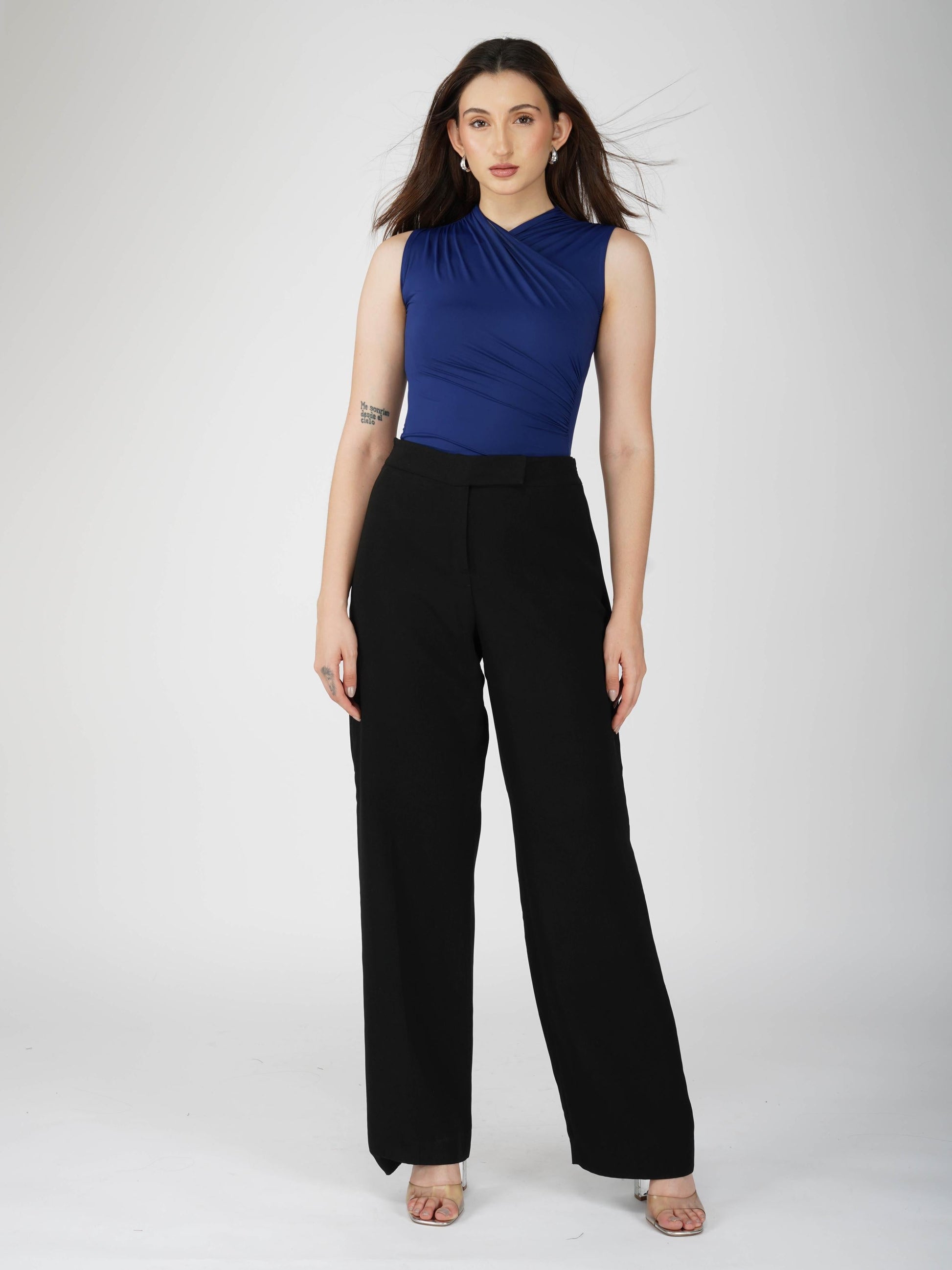 Elevate your layers with the Glint Bodysuit in Navy. This overlap bodysuit in classic navy blue features a flattering wrap-style neckline and sculpted fit that enhances your curves with ease. Soft, stretch fabric ensures all-day comfort, making it perfect for effortless day-to-night dressing.
