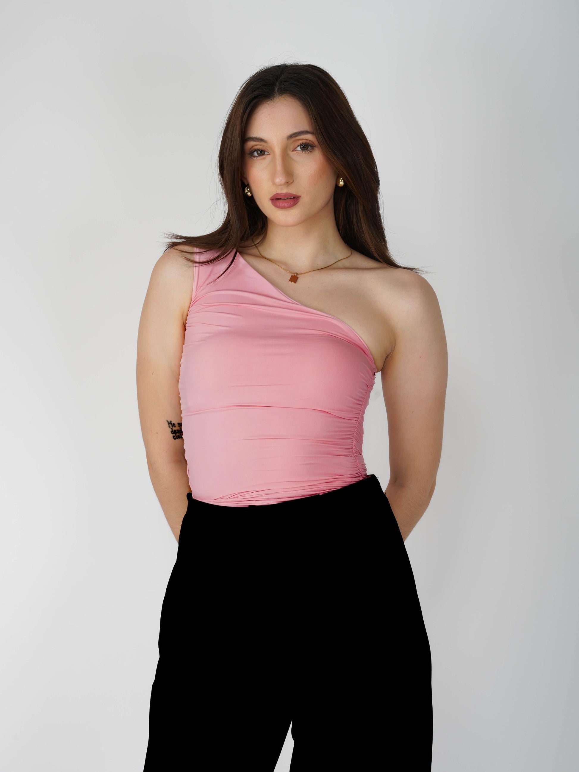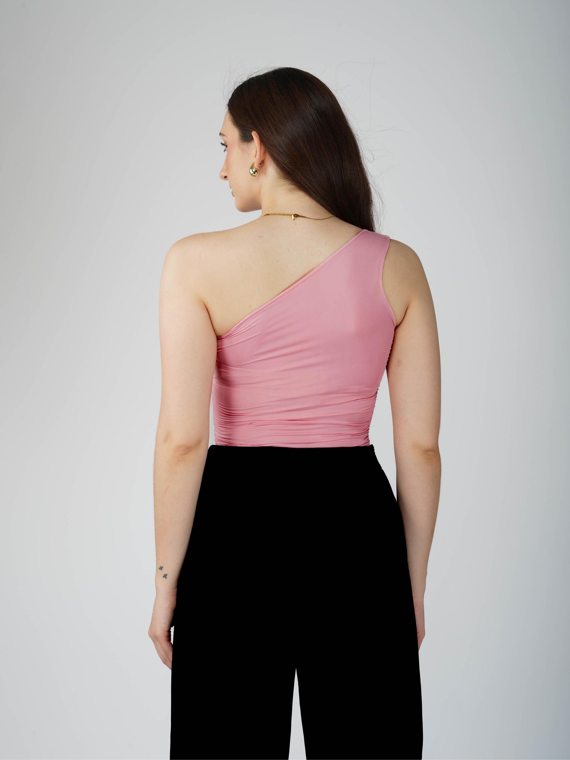Pink One Shoulder Bodysuit - Halo Bodysuit (Flamingo)