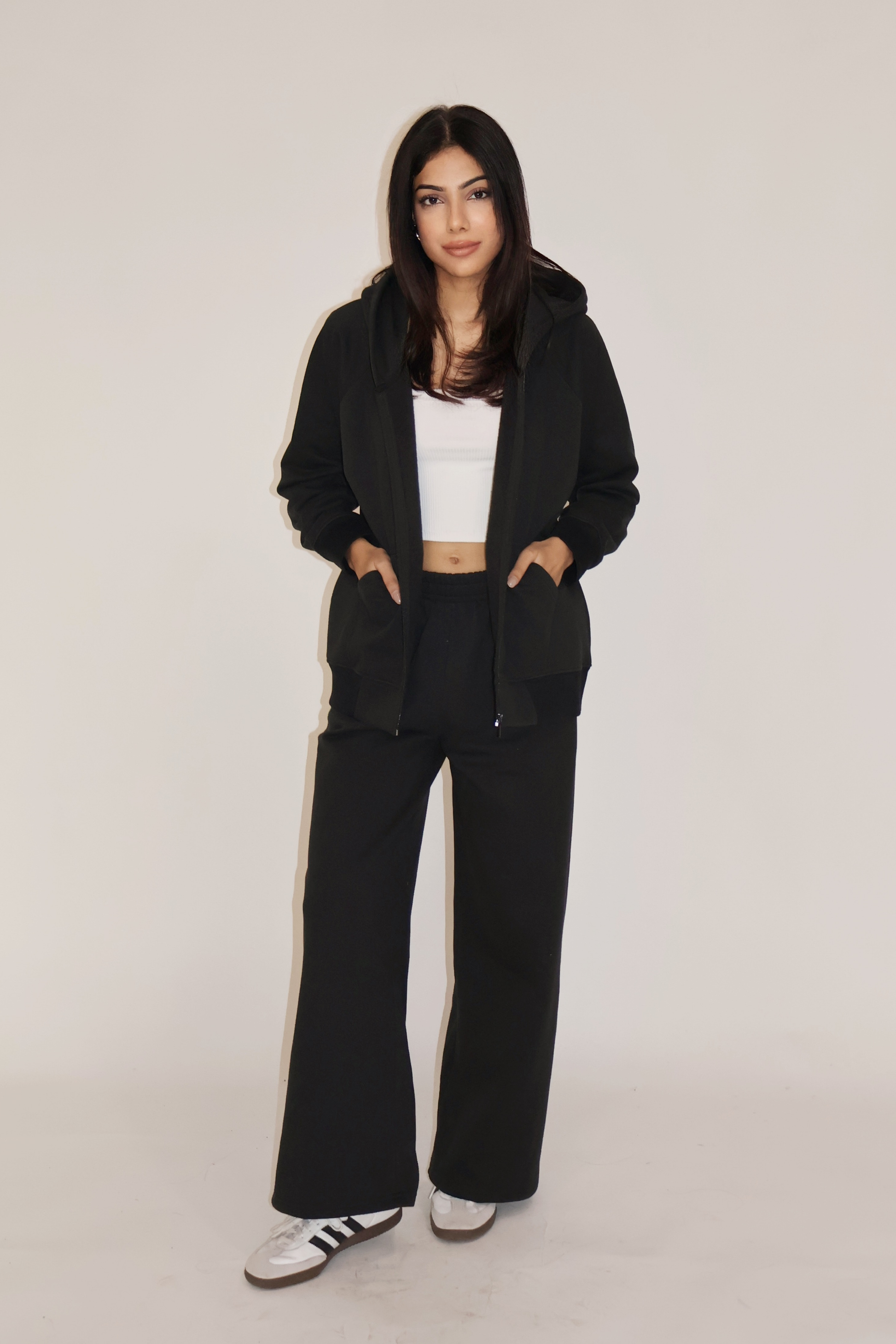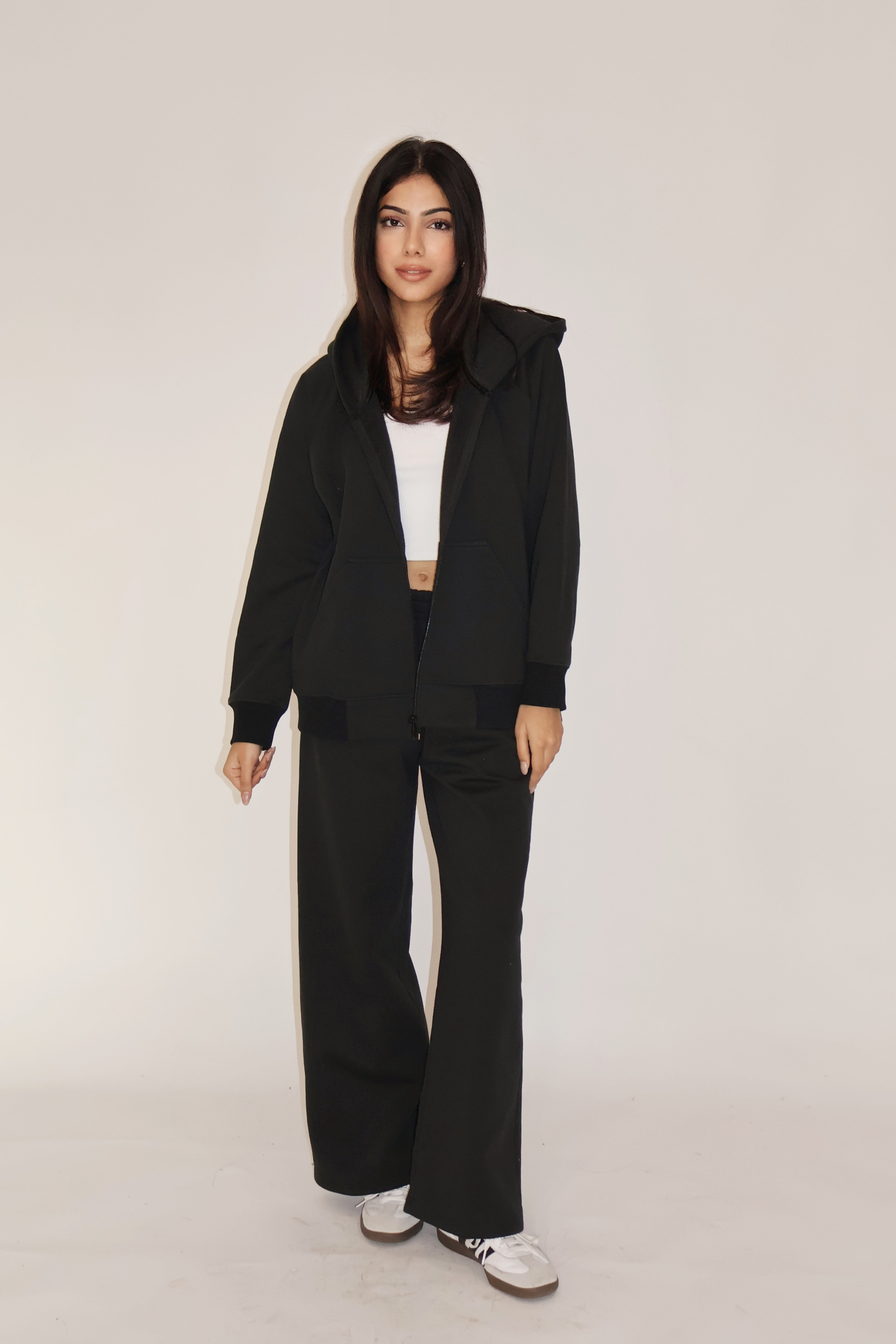 HOODED ZIPPER CO-ORD SET - (Black)