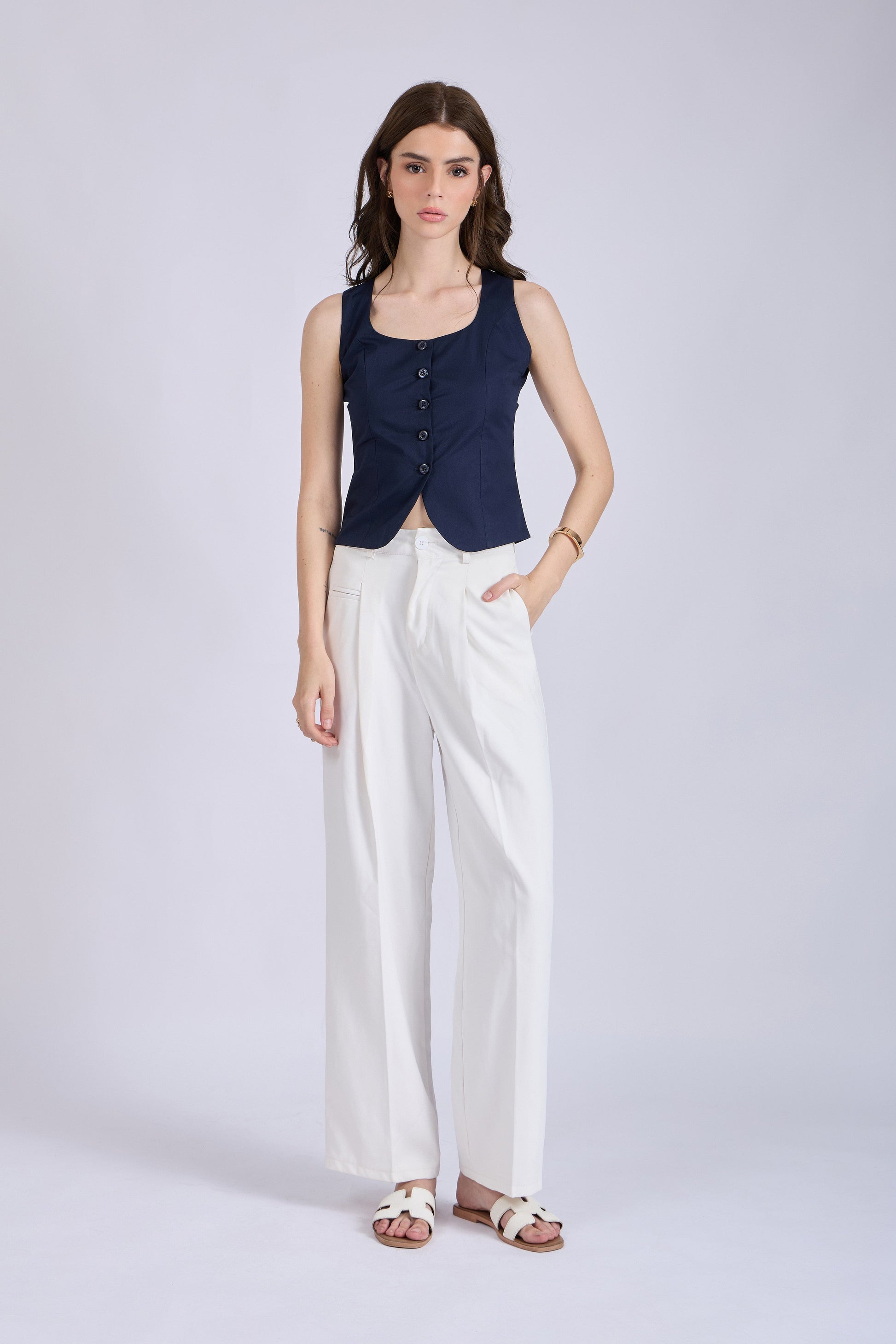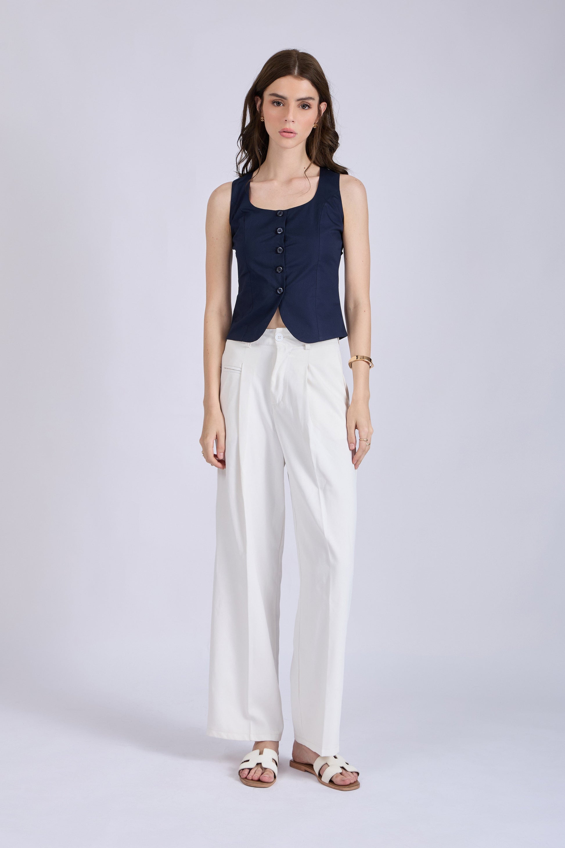 The ASTER waistcoat balances modesty with modern femininity. Featuring a flattering square neckline that frames the collarbone, it’s structured, slightly elongated, and panelled to give your body a sculpted shape. With full lining, a refined silhouette, and tonal buttons, ASTER is designed to look clean and put-together—perfect for office layering or power dressing. It’s understated yet striking, with a strong front and a sharply tailored back. An everyday essential with timeless appeal.