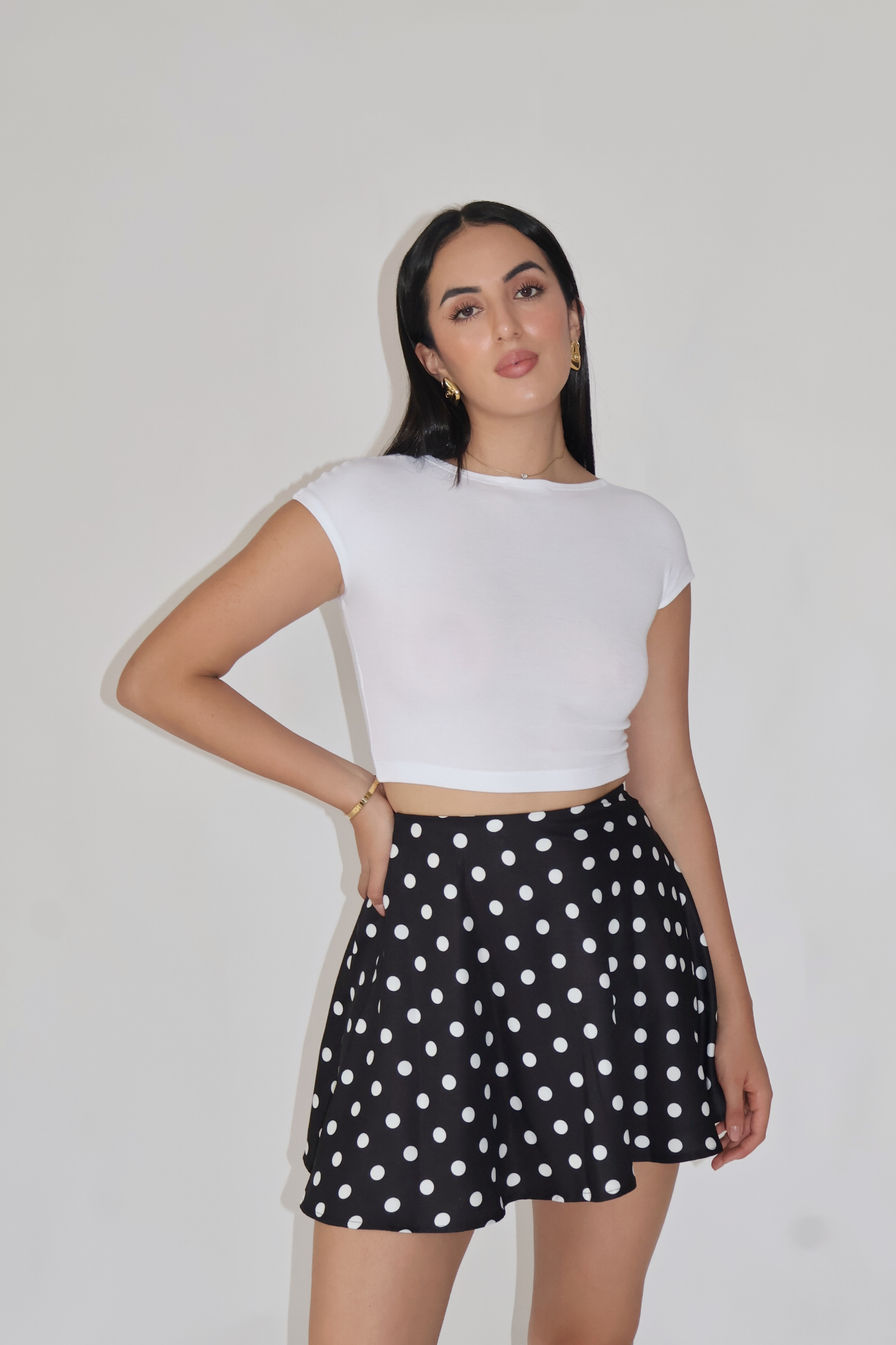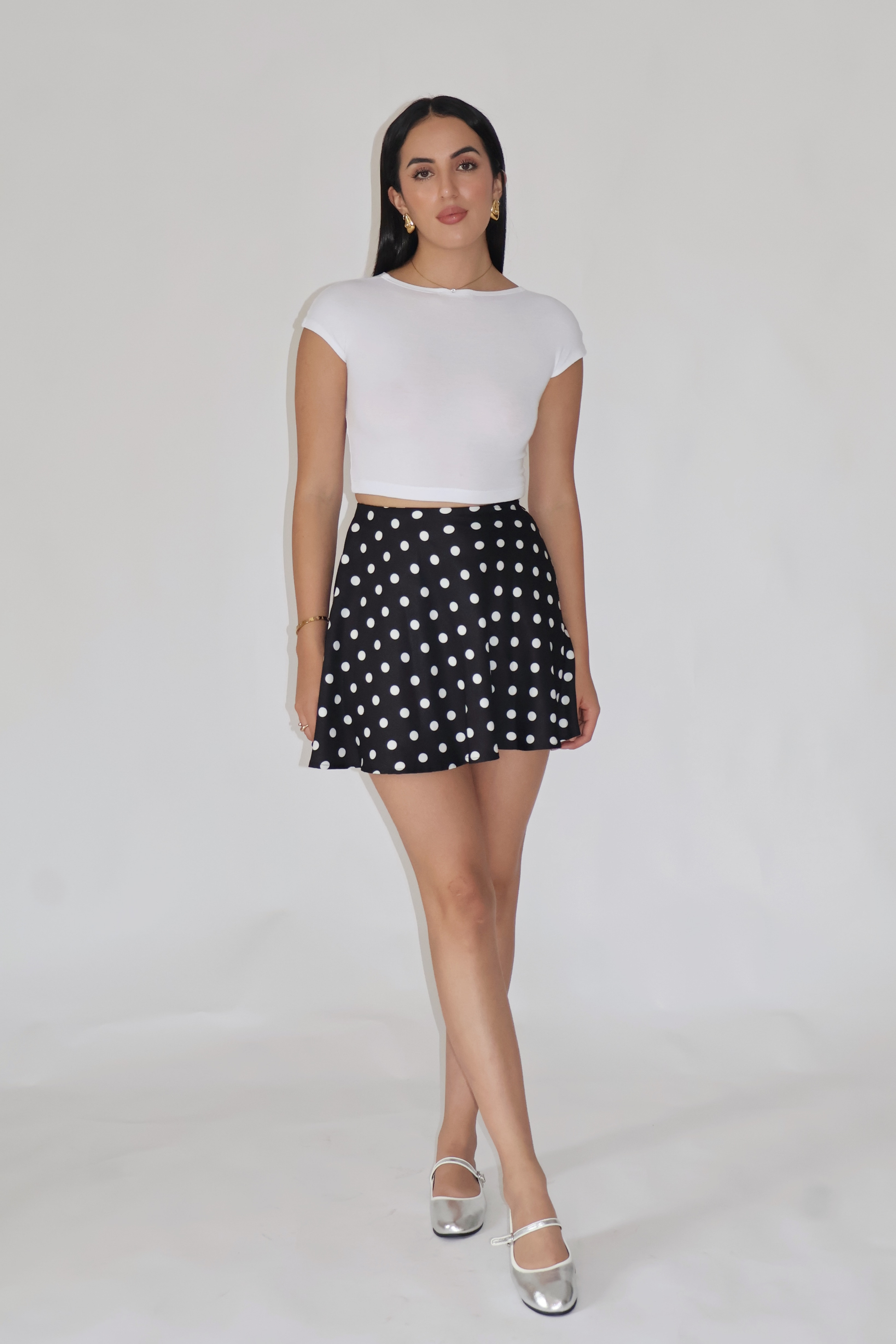 The NYSA Skirt is a playful A-line mini designed with a clean waistband, subtle flare, and an elasticated back for ease. With its youthful shape and polished side zipper, it balances chic elegance with everyday versatility. Crafted from premium imported georgette crepe, it’s the ideal skirt for vacations, city outings, or smart layering. Style it with tanks, shirts, or structured blazers. The model is wearing size S. Delivery within 3–15 business days.