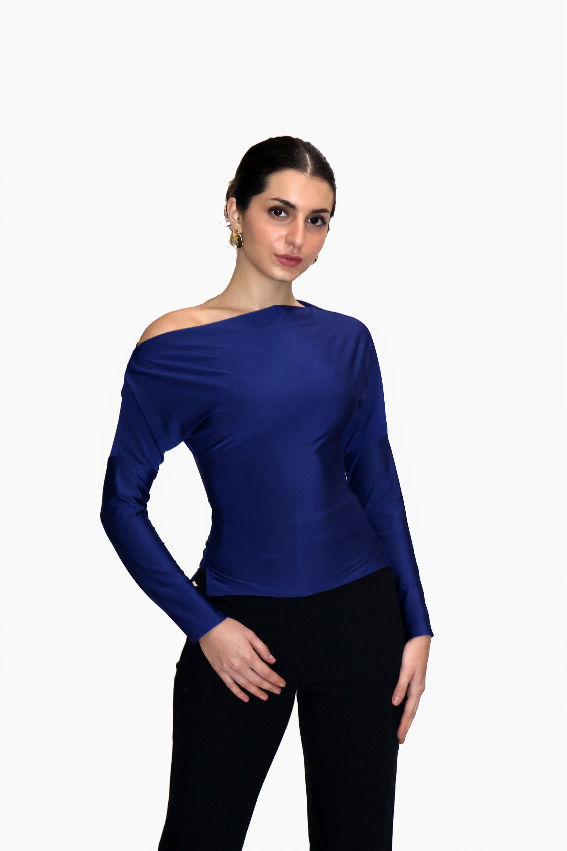 Blue One-Shoulder Full Sleeve Top - Oak Top (Navy)