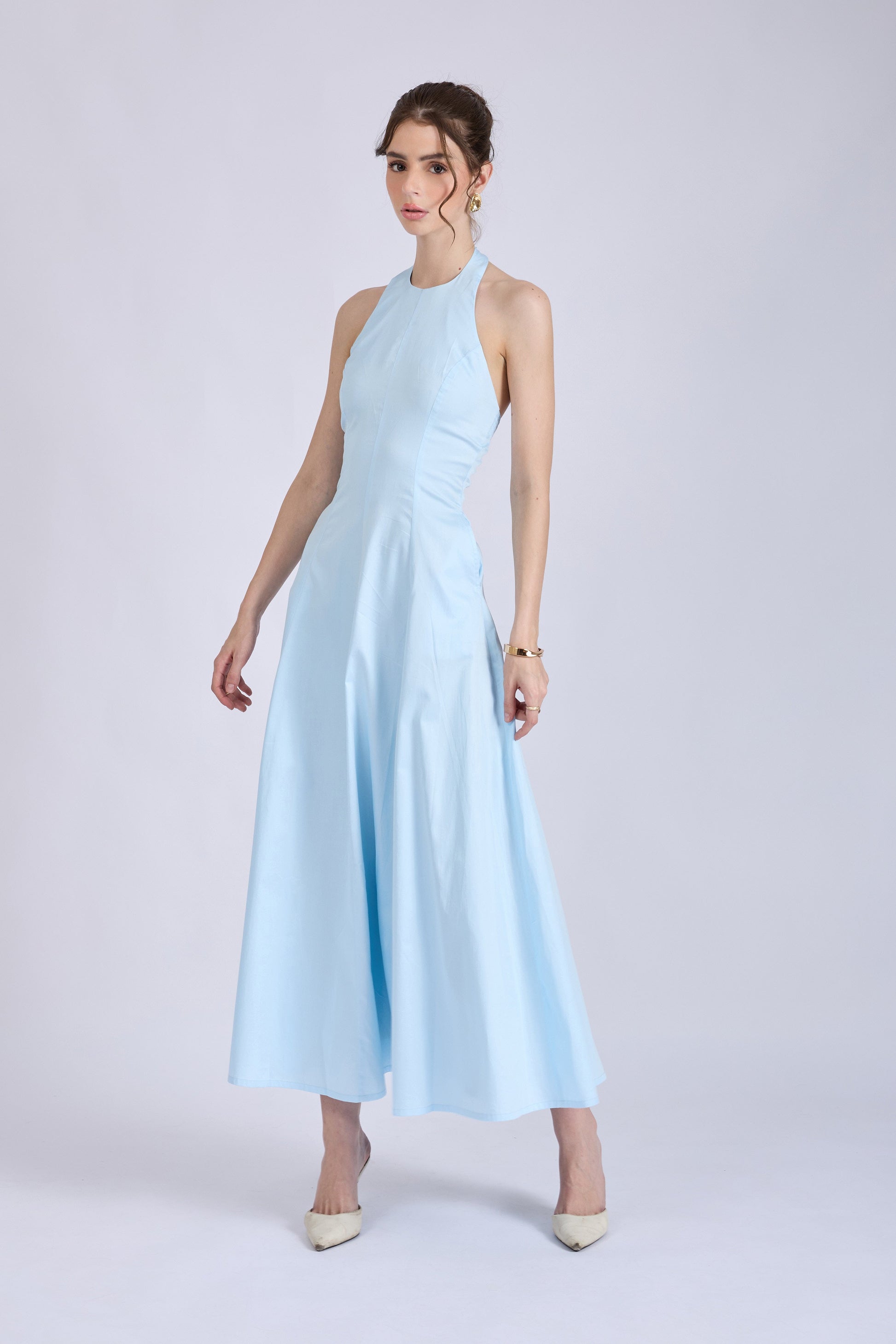 LILY is a flowy halter dress that flatters every body type with its nipped-in waist and wide flare. Featuring a multi-panelled construction that creates a dramatic silhouette, it comes with an elastic-and-button neck closure for comfort. Crafted in double-lined cotton and stitched with side smocking and a zipper for the perfect fit, it’s princessy, polished, and practical (yes, it has pockets!). From brunches to celebrations, this dress is your summer fairytale come true.