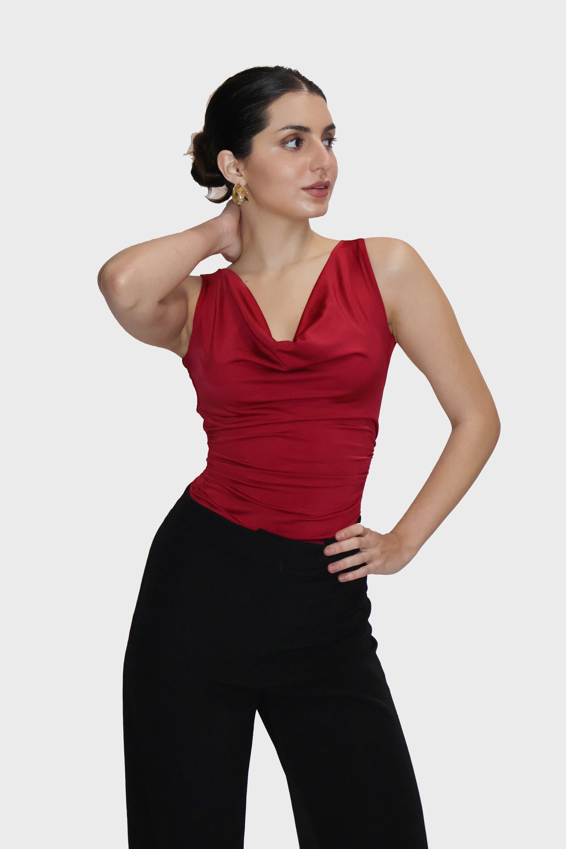 Red Cowl Neck Bodysuit - Prism Bodysuit (Cherry)