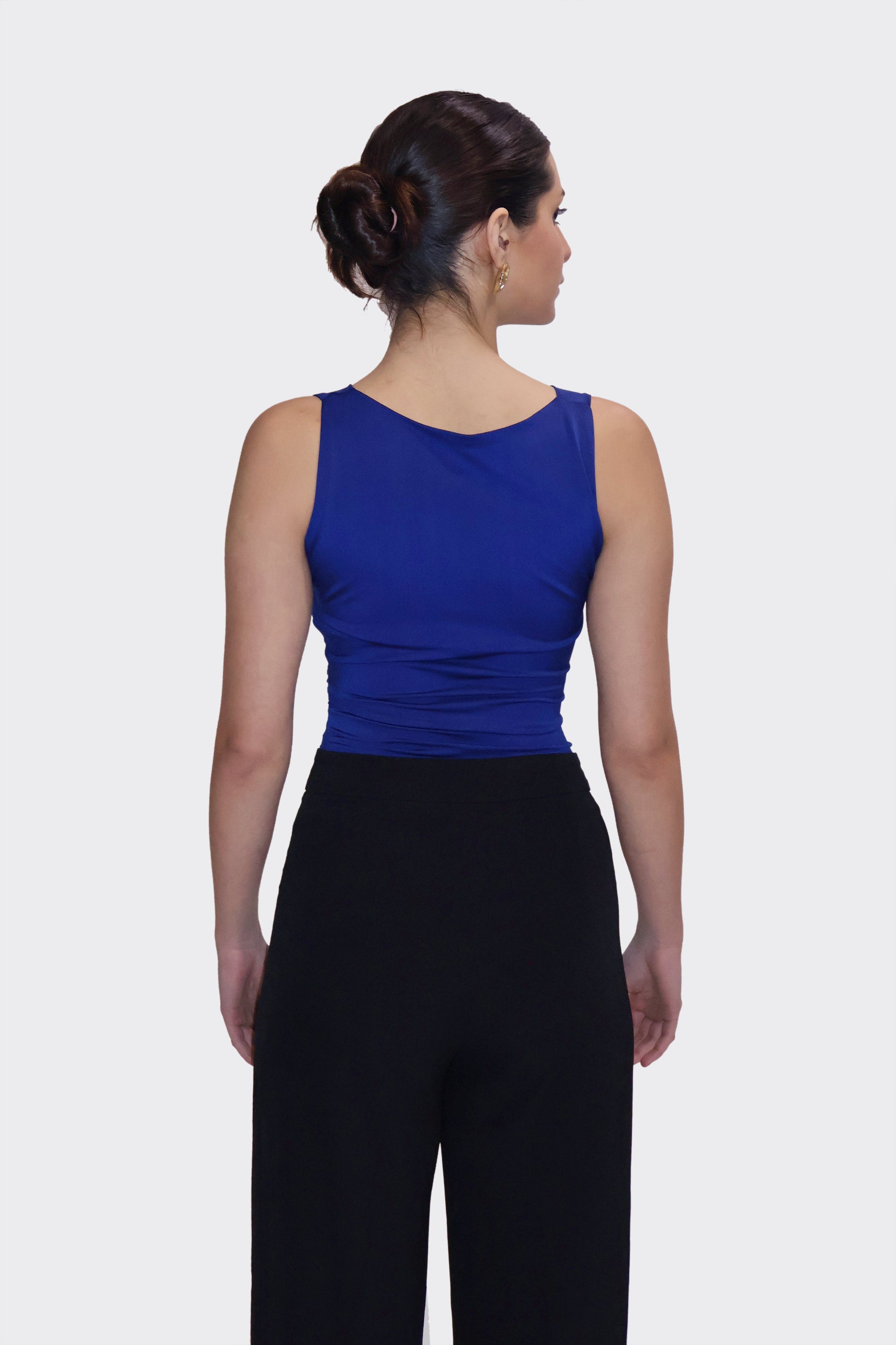 Versatile and striking, the Prism Bodysuit in Navy is designed to flex with your style. This cowl neck bodysuit in classic navy blue can be effortlessly converted into an off-shoulder look for a bold twist. The ruched detailing at the waist sculpts and enhances your curves, while the butter-soft elastane fabric ensures unmatched comfort and stretch. A stylish day-to-night staple that brings sophistication to any occasion.