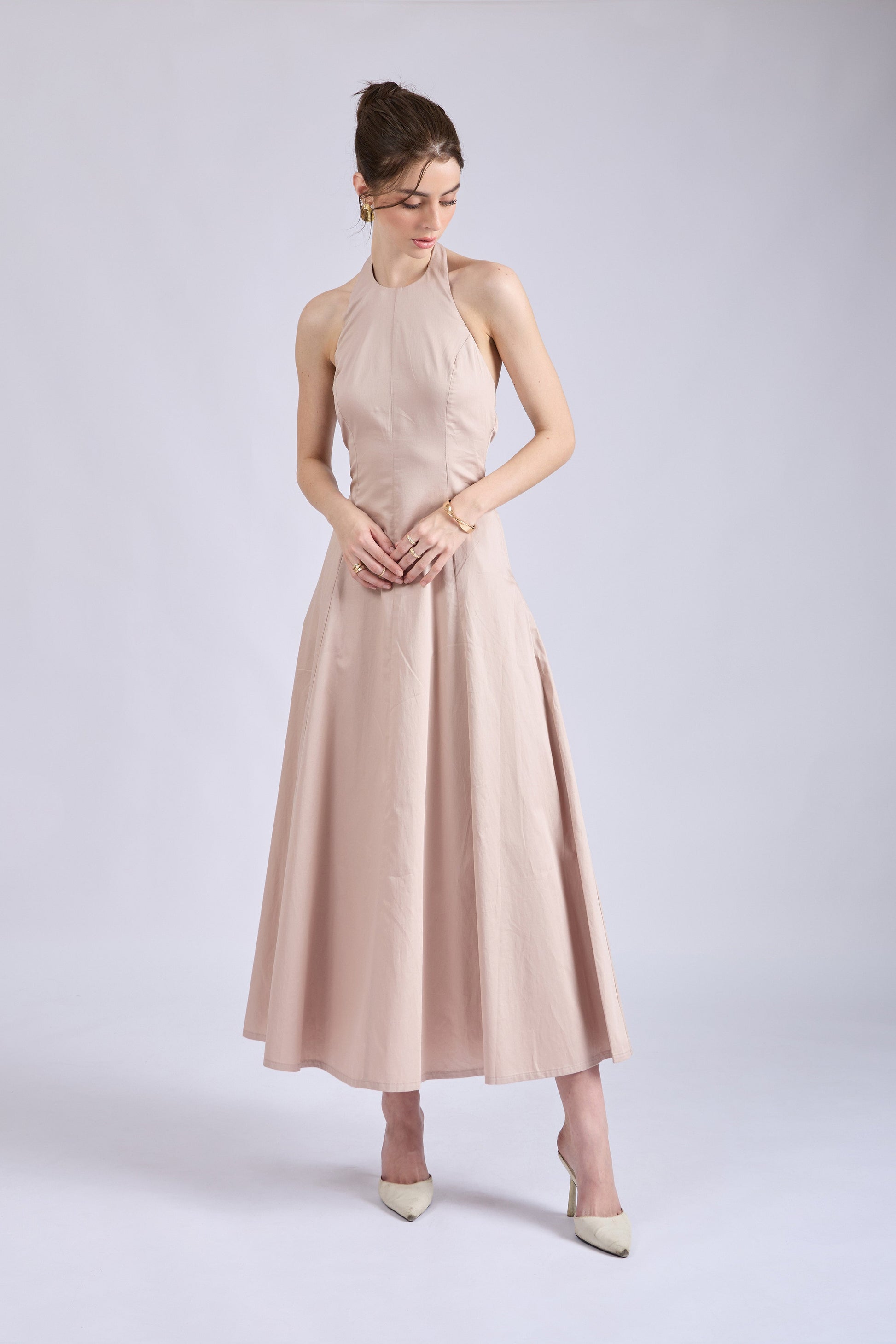 LILY is a flowy halter dress that flatters every body type with its nipped-in waist and wide flare. Featuring a multi-panelled construction that creates a dramatic silhouette, it comes with an elastic-and-button neck closure for comfort. Crafted in double-lined cotton and stitched with side smocking and a zipper for the perfect fit, it’s princessy, polished, and practical (yes, it has pockets!). From brunches to celebrations, this dress is your summer fairytale come true.