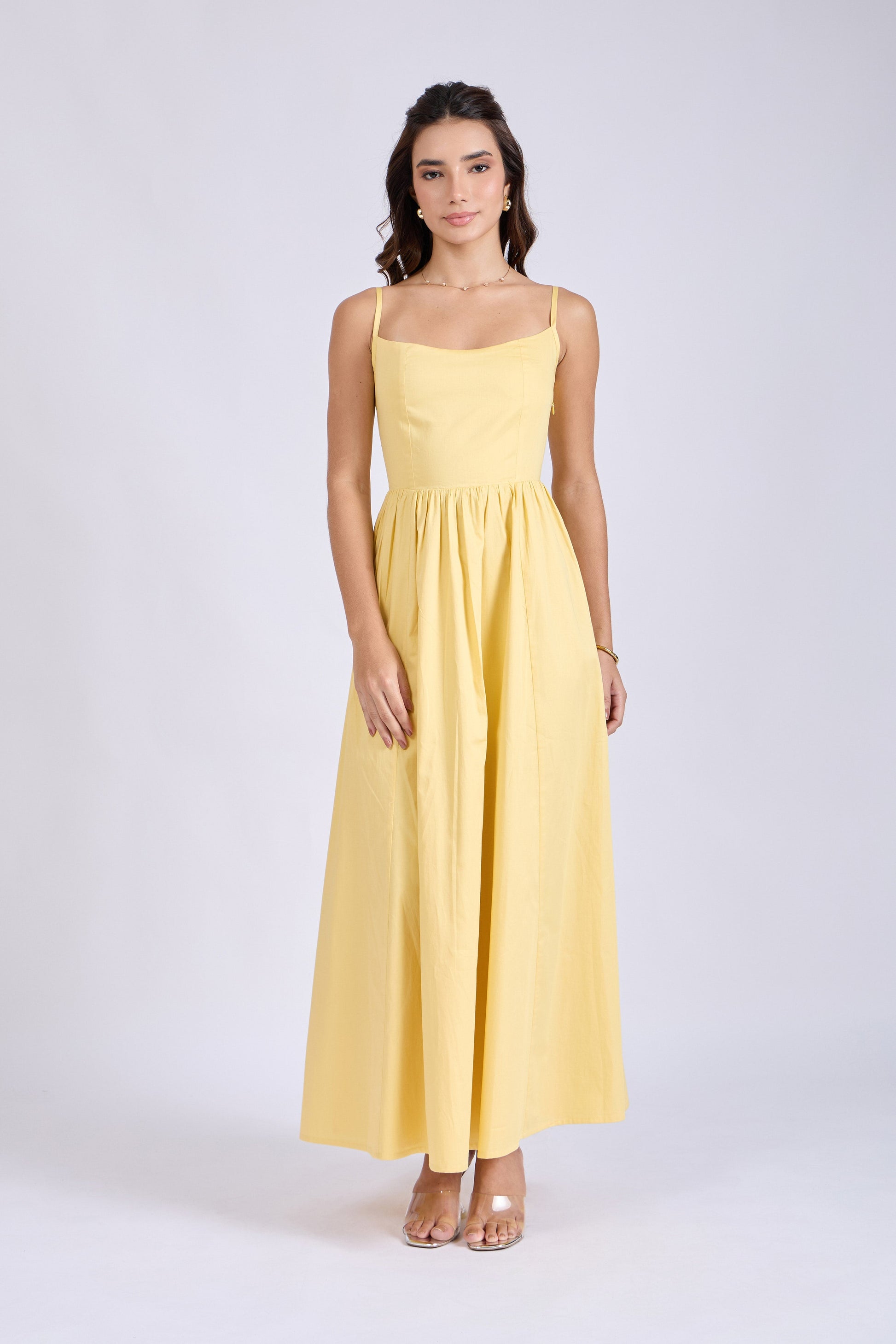 Butter Yellow Strappy Flare Dress – ZIA