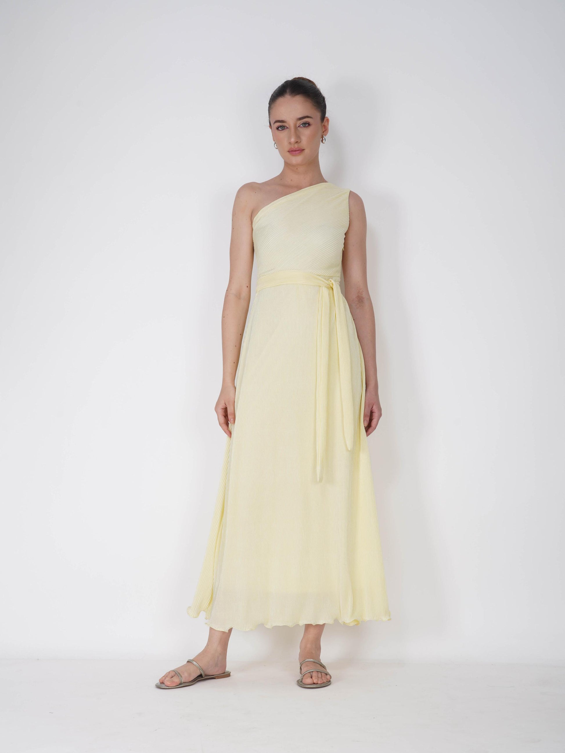 Yellow One-Shoulder Maxi Dress - Sun Dress (Butter)