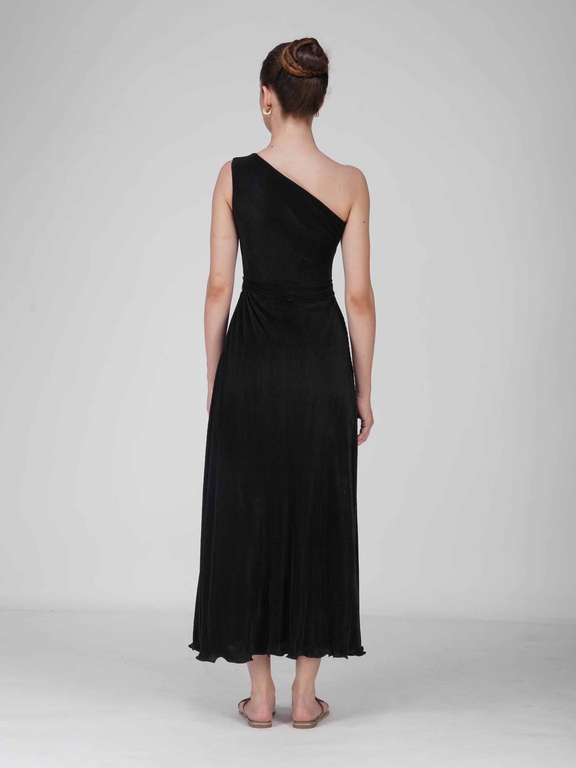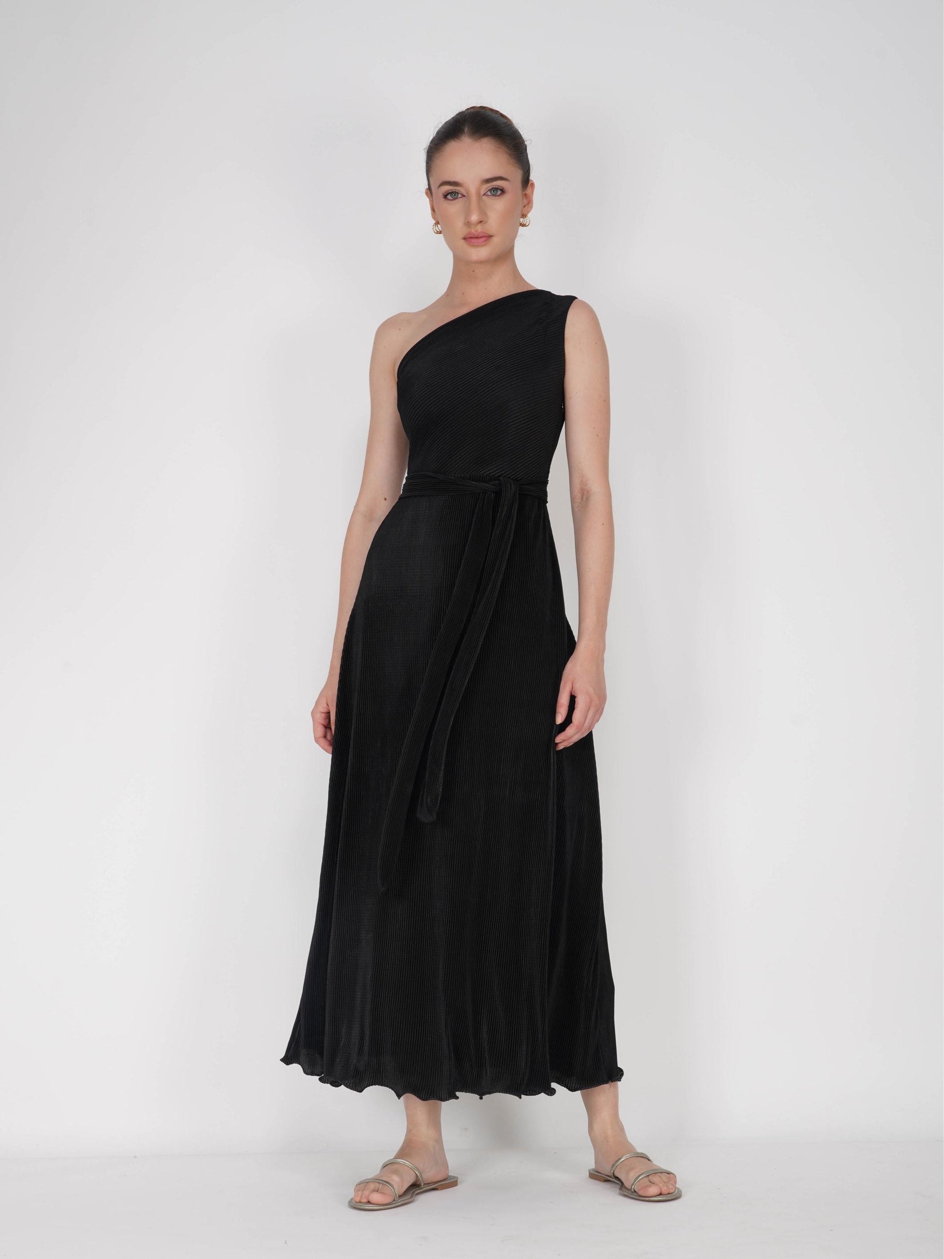 Black One-Shoulder Maxi Dress - Sun Dress (Onyx)