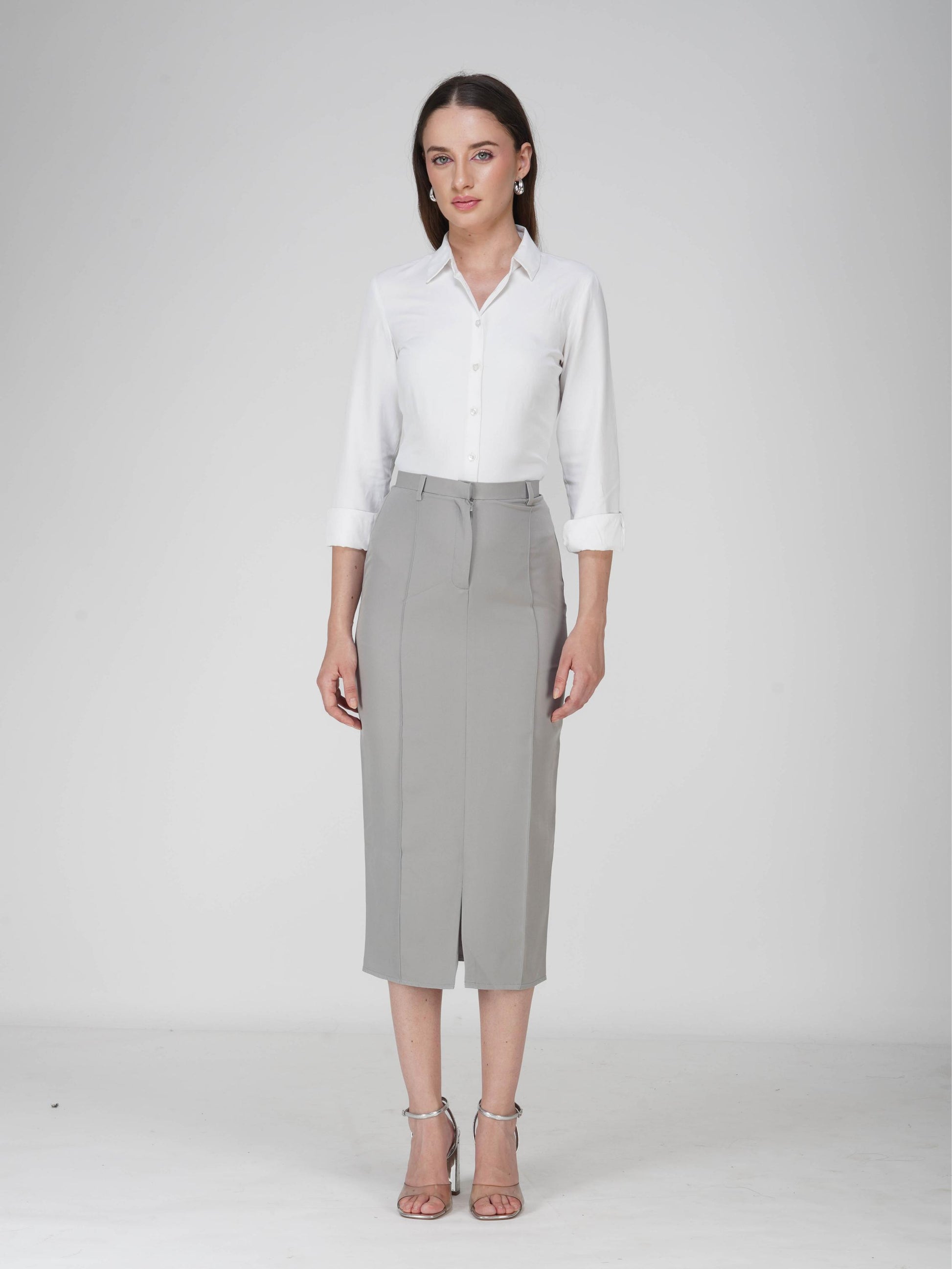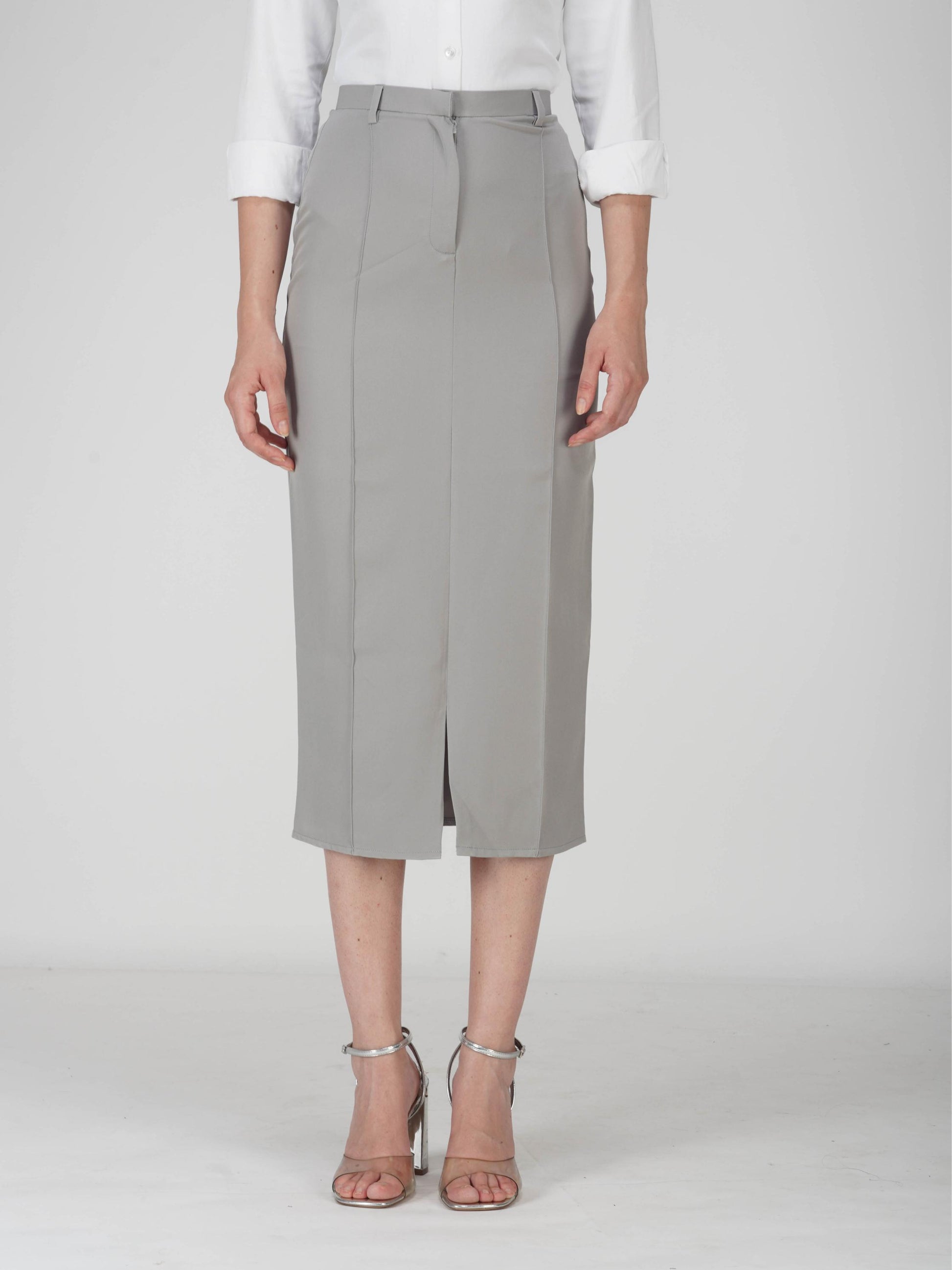 Grey Tailored Slit Skirt - Tide Skirt (Ash)