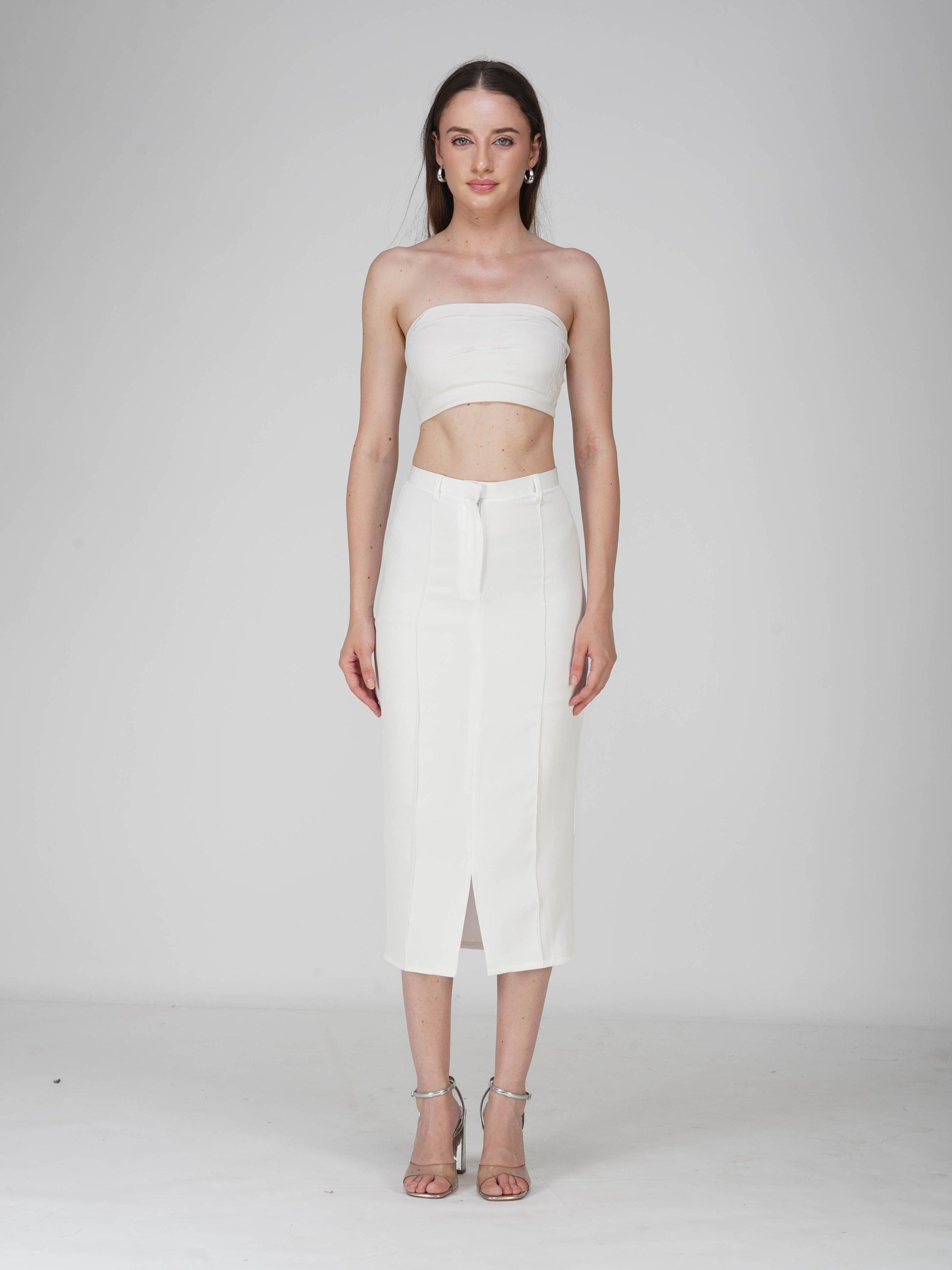 White Tailored Slit Skirt - Tide Skirt (Dove)