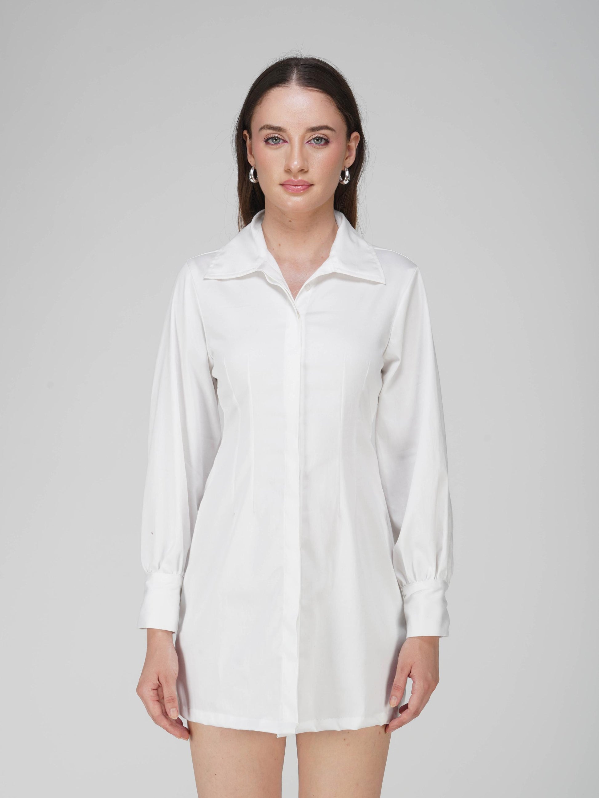 White Corset Illusion Shirt Dress - Vivid Dress (Dove)