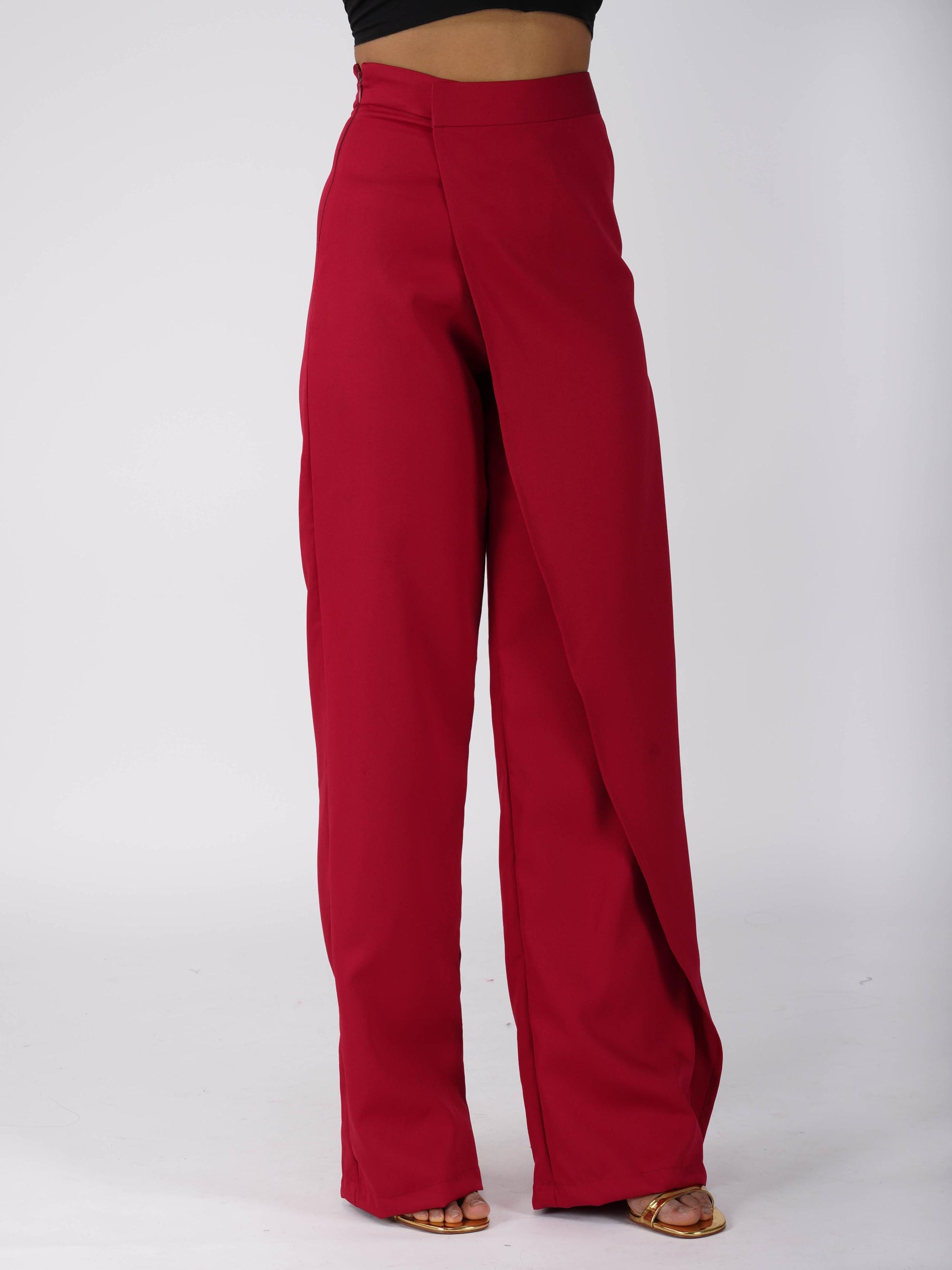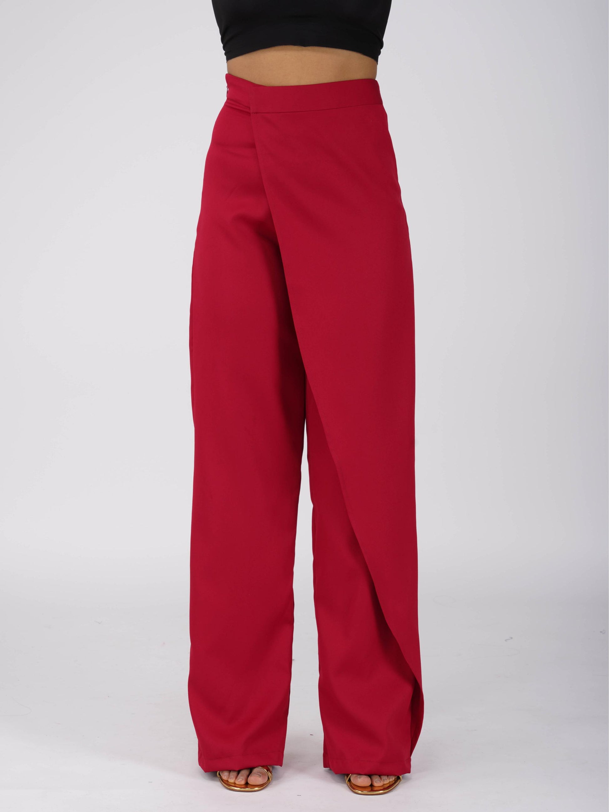 Elevate your everyday with the Wave Pants in Cherry. These one-side overlap pants in vibrant cherry red feature a sleek side zipper, creating a refined silhouette with a contemporary twist. Perfect for workdays or chic brunches, they bring understated elegance to your wardrobe.
